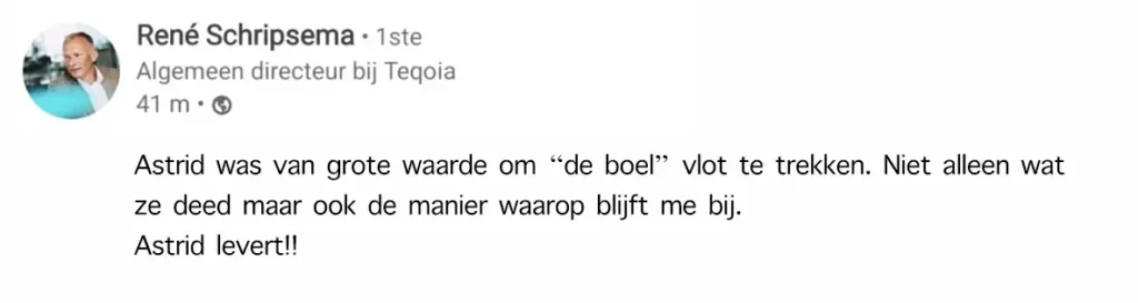 Met enthousiasme en een positieve instelling ga ik aan de slag. Want hoewel ik alweer heel wat jaren in Zeeland woon, zet ik graag met een Rotterdamse mentaliteit de schouders eronder. Ik kom graag in contact om eens te brainstormen over waar binnen jouw organisatie kansen liggen. Mail of bel gerust!